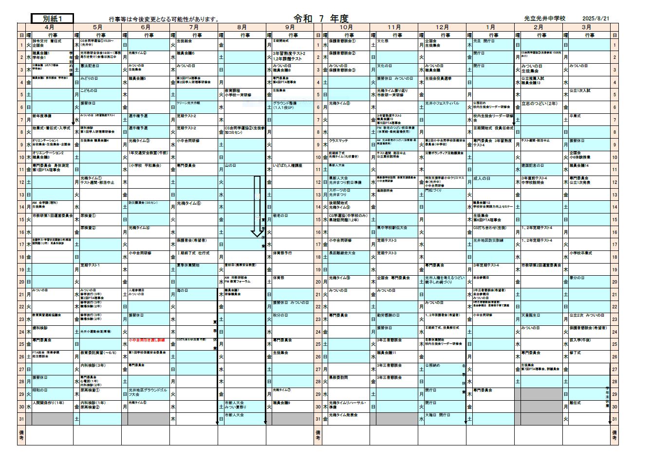 令和7年度年間行事予定を掲載しました。(8/21) 下記 文字または画像をクリックしてください。