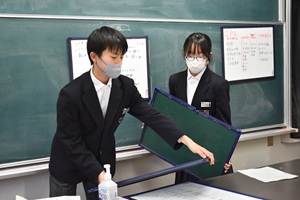 新生徒会執行部の2人と各クラス学級委員2人ずつが昼休みの時間を利用し、準備を進めてきました。